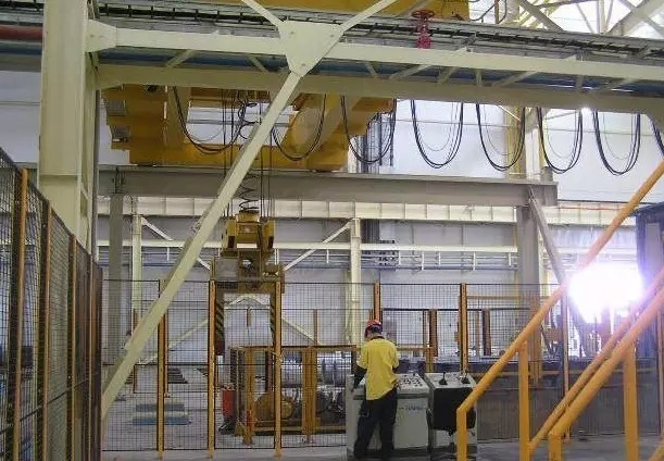 二、人機分離。人站在安全防護柵欄外的安全地帶用電腦操作行車。