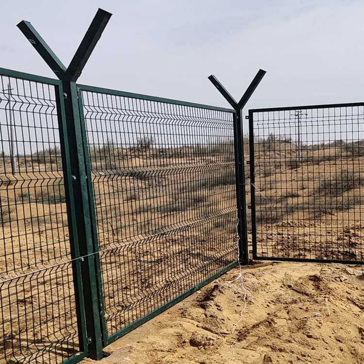 機場圍界常用規格: 尺寸:2*3m(柱中到柱中) 網孔:5*10cm,5*20cm 立柱一般采用60X60、80X80的矩形鋼管,頂部帶有v字支架用來安放刀刺滾籠。 優點:相較于傳統鋼筋混凝土墻來說,具有成本低易安裝施工,施工周期短等特點。