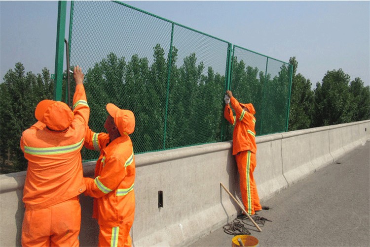 橋梁防拋網經過各種表面處理后,使其產品性能大大增強,使用壽命更久。表面處理主要采用:鍍鋅、浸塑、噴塑等防腐處理。使產品具有很好的抗老化、抗曬、耐腐蝕等特點。其產品花色多樣,美觀大方,根據顏色的調配能與當地景觀達成一致。其安全性能系數高、防攀爬能力好,網片連接方式采用鍍鋅防盜螺絲連接,有效防止人為的破壞性拆卸,橫向四道折彎加強筋,使網面強度顯著增加。