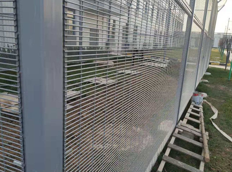 2、軍事基地金屬隔離網片的連接采用M12×35mm熱鍍鋅螺栓和防拆卸螺栓與立柱連接,每個網片與立柱接用不少于5對(10個)連接螺栓,其中防拆螺栓不少于3對(6個)每側不少于3個。網片底端距離地面50mm,以避免雨水腐蝕和垃圾堵塞。