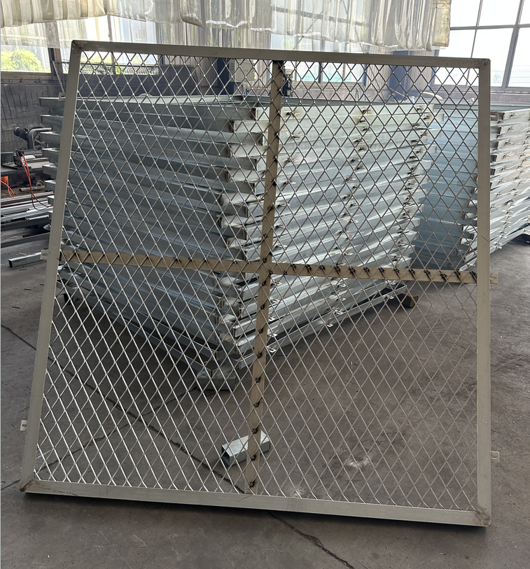 監獄鋼板隔離網常用規格:整體安裝尺寸4.5米高*2.5米寬或4米高*3米寬,網孔50*100mm,網線板厚5mm*梗絲5mm,邊框50*50*5mm角鐵或40*40*3mm方管,立柱100*100*3mm或80*80*3mm,V型又50*50*3mm或40*40*3mm,刀片刺繩bto-220型號,底盤300*300*10mm,緊固件專用防盜螺栓,材質O235低碳鋼,表面處理熱鍍鋅+浸塑(噴塑)。