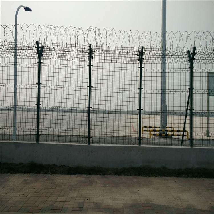 機場護欄網的顏色最常用的是綠色的,深綠色或墨綠色,也有根據周邊機場設施的顏色相協調一致,格調一致,選用相應的顏色的,比如藍色或藍白色的機場護欄,或者黑色、黃顏色等。