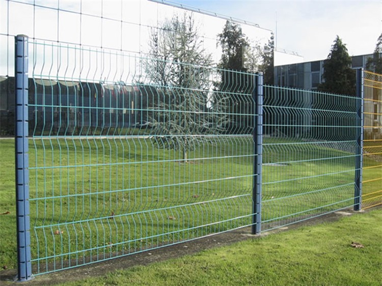 另外,頂部需要架設刀刺網的,先將拉絲固定在公園用金屬圍欄網的頂部,形成一個v型托網用于架設蛇腹形刀刺網,(有的頂部直接安裝V型網) ,再將刀刺網按照10cm的間距均勻鋪設在v型支架上,用防拆卸卡扣與v型托網上的拉絲固定。