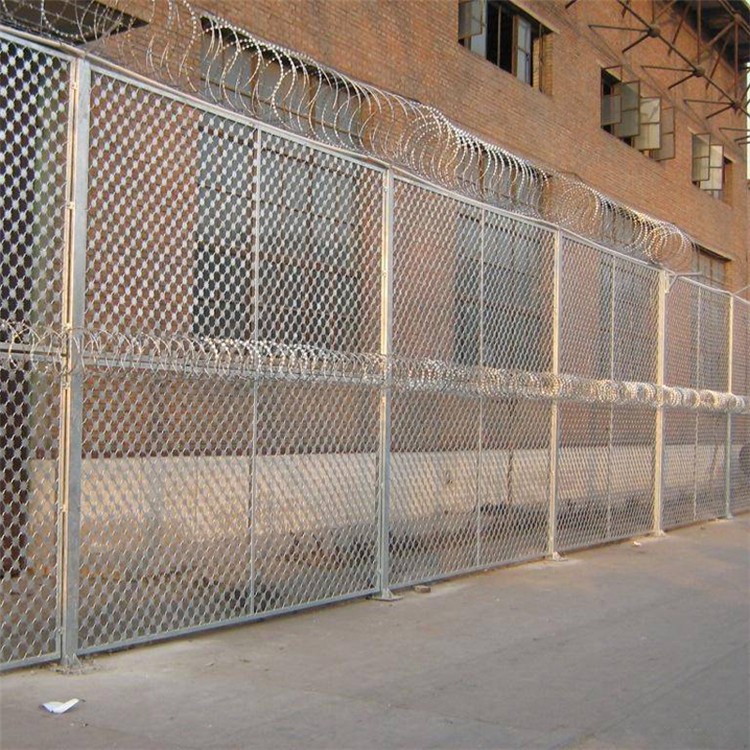 監獄鋼網墻也叫監獄護欄網,監獄隔離網,是應用于監獄相關單位看守所,戒毒所,拘留所,重要軍事基地,機關單位,哨所,邊防邊境線等的圈禁防護。這些單位統一有一個特點,所需要的物理安防鋼網墻必須是防攀爬,防破壞,防切割的,也就是我們最高標準的隔離網。以監獄為例,一般常用的鋼網墻地方可分為:獄墻上鋼網墻,巡邏道鋼網墻,外監墻鋼網墻,內監墻鋼網墻。根據所需要的場合不同,地方監獄驗收標準不同,監獄鋼網墻的樣式及規格常用的有以下幾種: