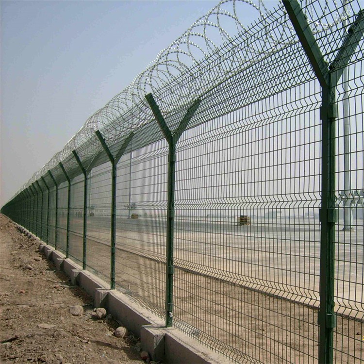 機場圍界隔離柵是一種采用低碳鋼絲焊接而成的網片+立柱+刺鐵絲(可選) +斜撐(可選)連接而成的護欄網產品。本產品美觀大方、防腐性好、易保養、防攀爬能力強。主要適用于機場周圍的隔離防護、美化及防翻越工程。本產品采用組裝式整體框架結構,具有堅固耐用、利于施工、安裝方便、快捷的特點。
