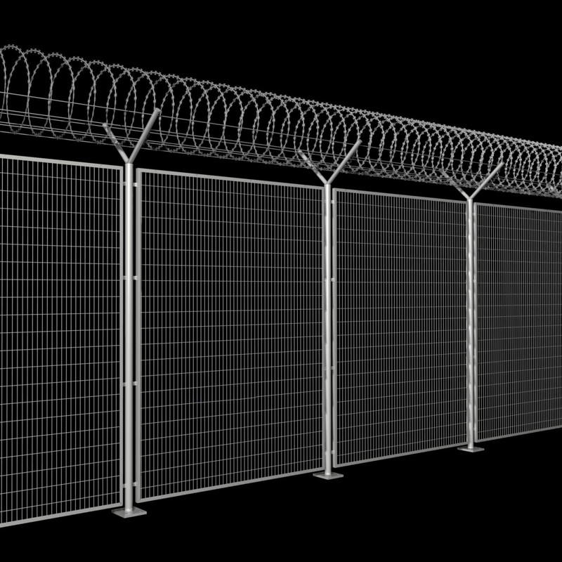 監獄圍墻內外均要設置防攀爬鋼網墻,鋼網墻應采用熱鍍鋅+表面噴涂雙重防腐處理,設計耐腐蝕年限應不少于10年。