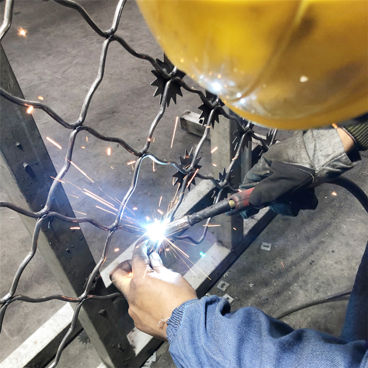 監獄鋼網墻——刀片刺網具有嚇阻、防翻越等效果,材質堅硬,高強度,高張力,造型設計獨特,不宜觸摸,因而能達到極好的防護隔離效果.監獄護欄網還具有施工簡便,經濟實用等優點。材質:低碳鋼絲 ;規格:網高:2.5m—4m 網寬:2.5m-3m 螺旋型交叉刀片刺網是在兩條刀片刺網之間以不銹鋼片和鍍鋅鋼片強力夾扣,展開后即呈交叉狀,美觀又實用。監獄護欄網防腐形式:電鍍、熱鍍、噴塑、浸塑。