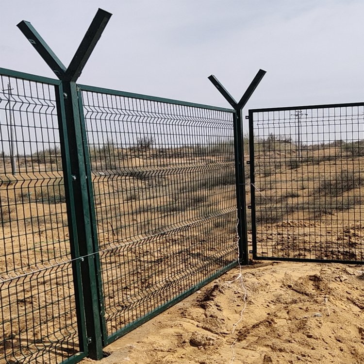 軍用機場隔離圍欄又稱作“Y型安全防御護(hù)網(wǎng)”,是由V型支架立柱,加強型焊接片網(wǎng),安全防盜連接件和熱鍍鋅刀片刺籠組成強度和安全防御性級別很高。近年來,被廣泛應(yīng)用在機場,軍事基地等高安全場所。注:如果在機場護(hù)欄網(wǎng)頂部加裝刀片刺絲、刀片刺繩后又很好的增強了安全防護(hù)性能。采用電鍍、熱鍍、噴塑、浸塑等防腐形式,具有很好的防老化、防曬、耐候等特點。其產(chǎn)品造型美觀、花色多樣,既起到圍欄作用,又起到美化作用。由于具有安全性高、防攀爬能力好,網(wǎng)片連接方式采用特制SBS緊扣件,有效防止人為的破壞性拆卸,橫向四道折彎加強筋,使網(wǎng)面強度顯著增加。