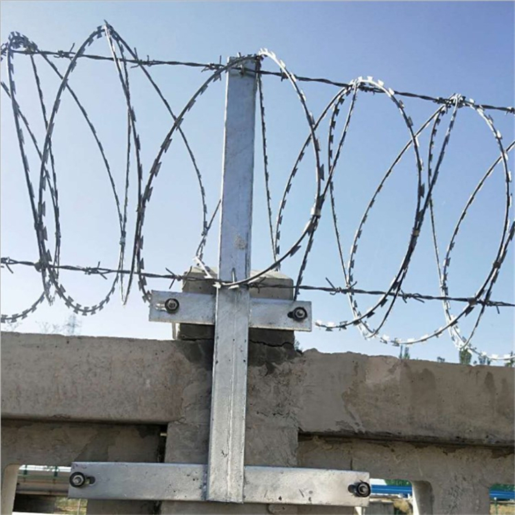 不銹鋼刀刺網使用的高光時刻是2021年的時候,云南邊境線全線封閉,主要是和邊境挨邊的都需要用刀刺網圈起來。生活中我們甚至能從幼兒園、小學圍墻的上方看到我們的倒刺網,安裝也很簡單。刺絲滾籠作為防護用品中的一種,隨著它的廣泛應用,在人們的日常生產生活中發揮著越來越重要的作用,保障著人們的安全。 刺絲滾籠防護性較強,使用壽命相比于同類產品來說也是更久一些的,并且防御性較強,是我們選擇防護設備的不二之選。采用刀片刺繩繞圈后相臨兩圈每隔120°用刺絲連接卡固定,張開后形成蛇腹網狀,閉合后刀片刺繩圈徑為50cm,張開后每交叉圈安裝間距20cm,直徑不小于45cm。刀片刺繩由沖切鋼板采用機械壓軋在鋼絲上成型,刀刺寬度22mm,兩刃垂直間距15mm,刀刺縱向間距34mm,芯絲直徑為2.5mm。刀片采用厚度0.5mm的Q195鋼板沖切制作,芯絲由HPB300?6.5mm高線鋼絲加工。世界各國已將刀片刺網廣泛用于軍事重地、監獄、政府機關、銀行,以及生活小區圍墻、私人住宅、別墅的圍墻、門窗、高速公路、鐵路護欄以及邊境線等用來防護保安。中國監獄基本上用的都是刀片刺網。