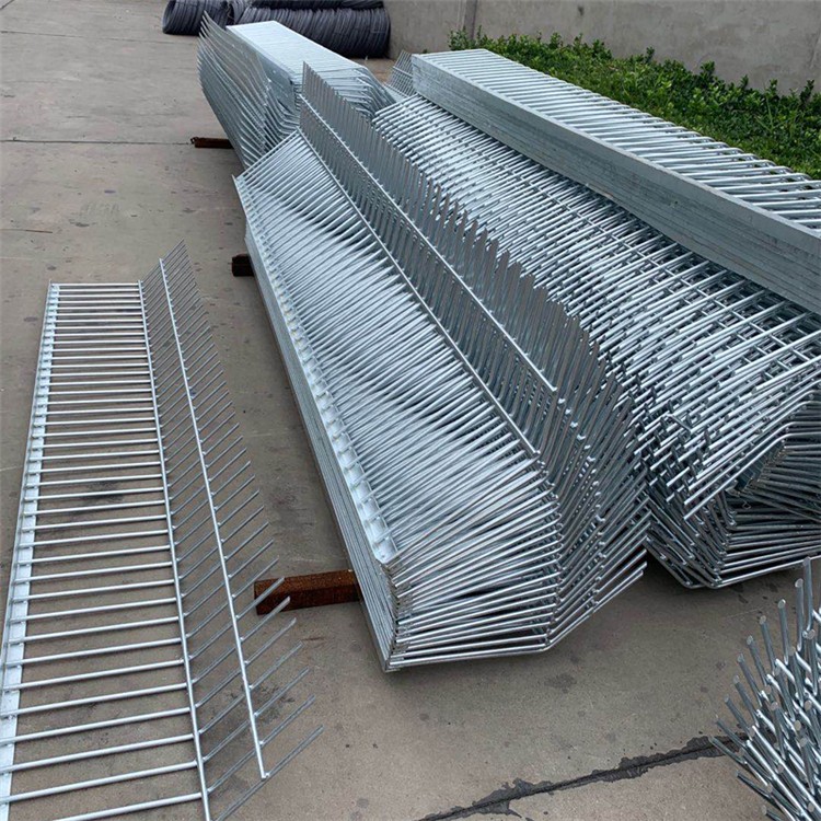 防護柵欄下部欄片內(nèi)側(cè)加裝金屬網(wǎng)片進行加高,金屬網(wǎng)片采用50mmх2mm鋼板邊框,內(nèi)部網(wǎng)絲采用HPB300φ6.5mm高線鋼絲冷拔加工,鐵路加密加高網(wǎng)-高鐵加高網(wǎng)片-鐵路加高防爬網(wǎng)網(wǎng)孔規(guī)格:75mmх150mm、50×100等,鋼絲:φ4.0-5.0mm,寬3.0m,高0.5、1.05米,利用抱箍與防護柵欄立柱和上檻連接。網(wǎng)片成形后應整體鍍鋅并進行熱浸塑(或噴塑)處理,鍍鋅量270g/m2,浸塑厚度0.8mm~1.2mm,顏色一般選用:藍色、墨綠色。涂層應均勻,顏色一致,表面光滑,無流柱,滴瘤、粉泡、漏鐵等缺陷。