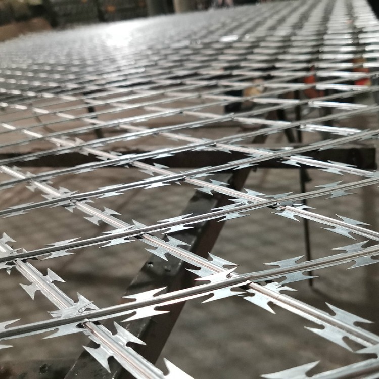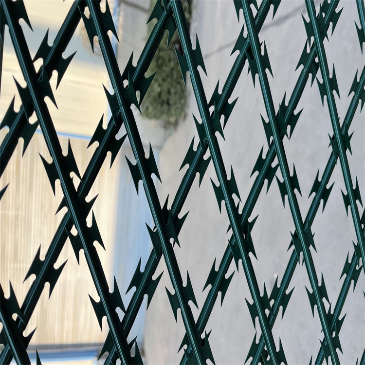 監獄菱形網孔隔離網是由刀片刺繩焊接而成,網孔呈現菱形的刀片刺網,一般網孔對角線大小為75*150mm、50*100mm。刀片刺網是一種名為刀刺鋼網墻、蛇腹式刀刺鋼網墻、刀片刺繩護欄網、刀刺防護網、尖刺圍網的監獄隔離網、獄墻護欄網、監獄防爬網、監獄網片、監獄圍墻等。它由刀片刺網和圍欄網組合使用,有熱鍍鋅刀刺網和不銹鋼刀刺網兩種,其中不銹鋼刀刺網比熱鍍鋅刀刺網價格較高,但防腐蝕效果、光亮度和材質都要比熱鍍鋅刀刺網好。