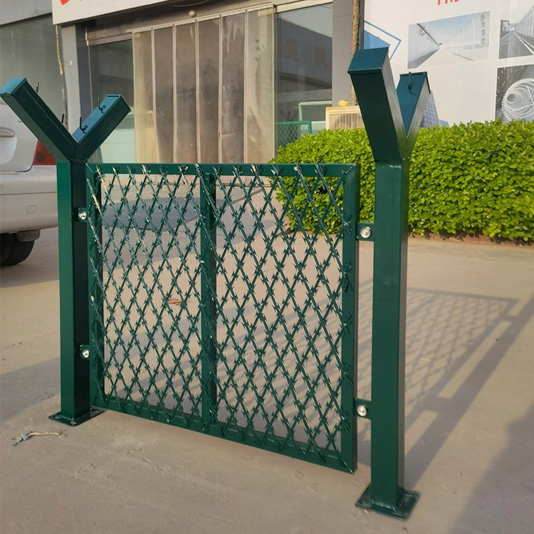 監獄隔離網的網孔不大于75mmX150mm(噴塑后),立柱采用60mmX60mm方管,壁厚不小于3mm。列間距為2.5m,立柱的底部連接到鋼筋混凝土底座,鋼筋混凝土底座的長度、寬度和高度不小于300mmX450mmX500mm,并且嵌入式鋼板構件與柱連接。