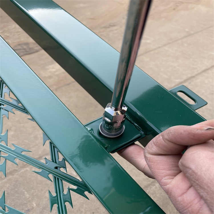 監(jiān)獄刺網(wǎng)護(hù)欄可直接在平地進(jìn)行安裝,同時(shí)也可以在圍墻上進(jìn)行二次安裝,其設(shè)計(jì)有效防止了攀爬逃脫。這種直刺式刺網(wǎng)隔離帶,是由柱體和普通刺繩以橫、縱、斜向交叉的方式綁定而成的。其主要應(yīng)用在特殊地帶、軍事基地的圈護(hù)以及溝壕的圈護(hù),其安裝方式簡(jiǎn)易,且經(jīng)濟(jì)耐用。