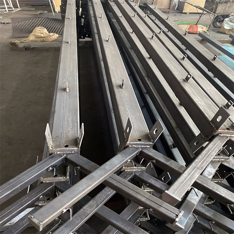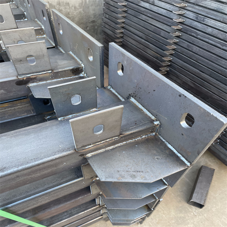 4. 立柱一般采用60X60的矩形鋼并焊有V型支架,或者采用70mmX100mm的掛式連接立柱;