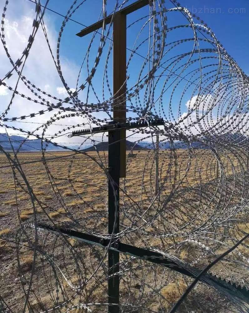 5、刀片刺繩繞圈后相臨兩圈每隔120°用刺絲連接卡固定,張開后形成蛇腹網狀,閉合后刀片刺繩圈徑為50cm,邊界刺鐵絲網價格,張開后每交叉安裝間距20cm,直徑不小于45cm交貨時,刺絲滾網(籠)成品應為按此條要求用刺絲連接卡固定好的成籠。刀片刺繩由沖切鋼板采用機械壓