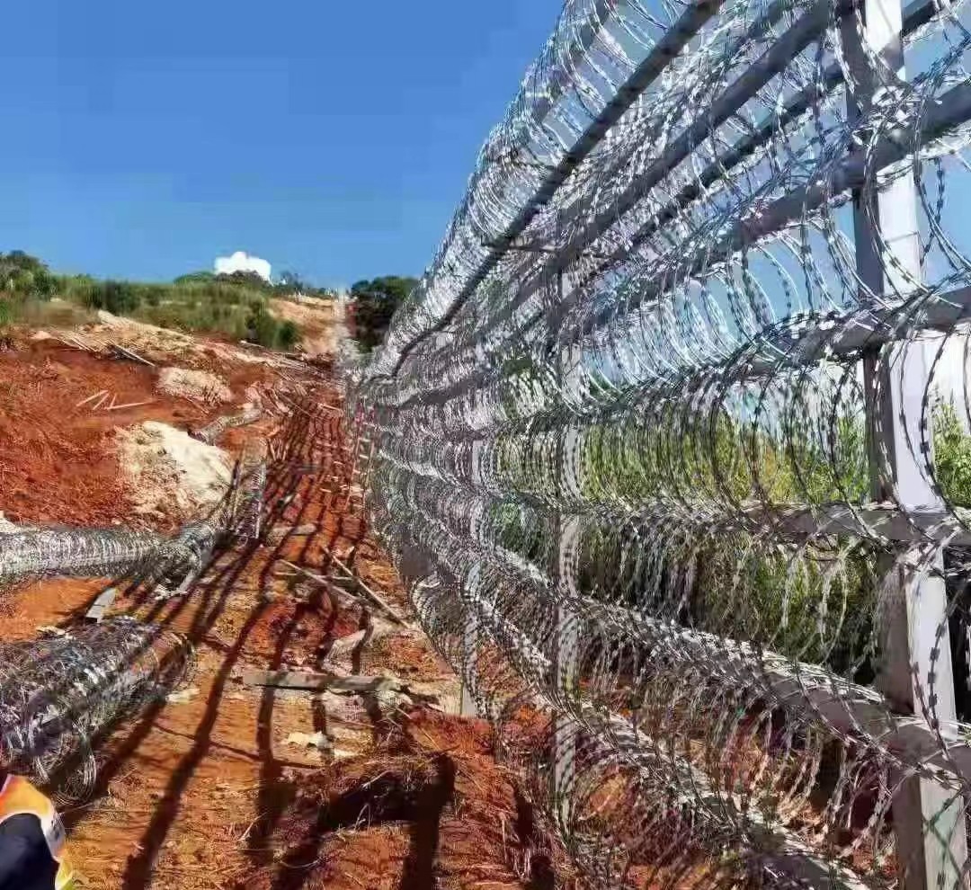 我們國家的邊境線很多地方進行實物隔離,或者采用了安全性好低、品質高的實體防護設施,如:普通鋼絲焊接網圍欄、金屬擴張網圍欄、金屬編織網圍欄,刺鐵絲等。