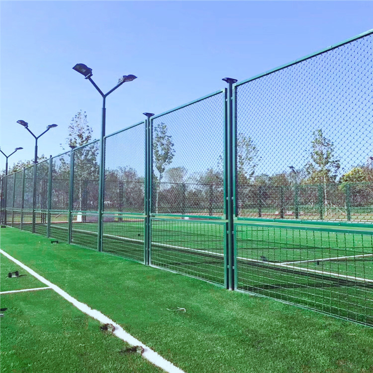 在籃球場、足球場等體育場所,可以使用勾花網護欄,網身為編織勾花網,比普通焊接網網身受力更多,不會因為球的撞擊而有網片開焊的的擔憂。