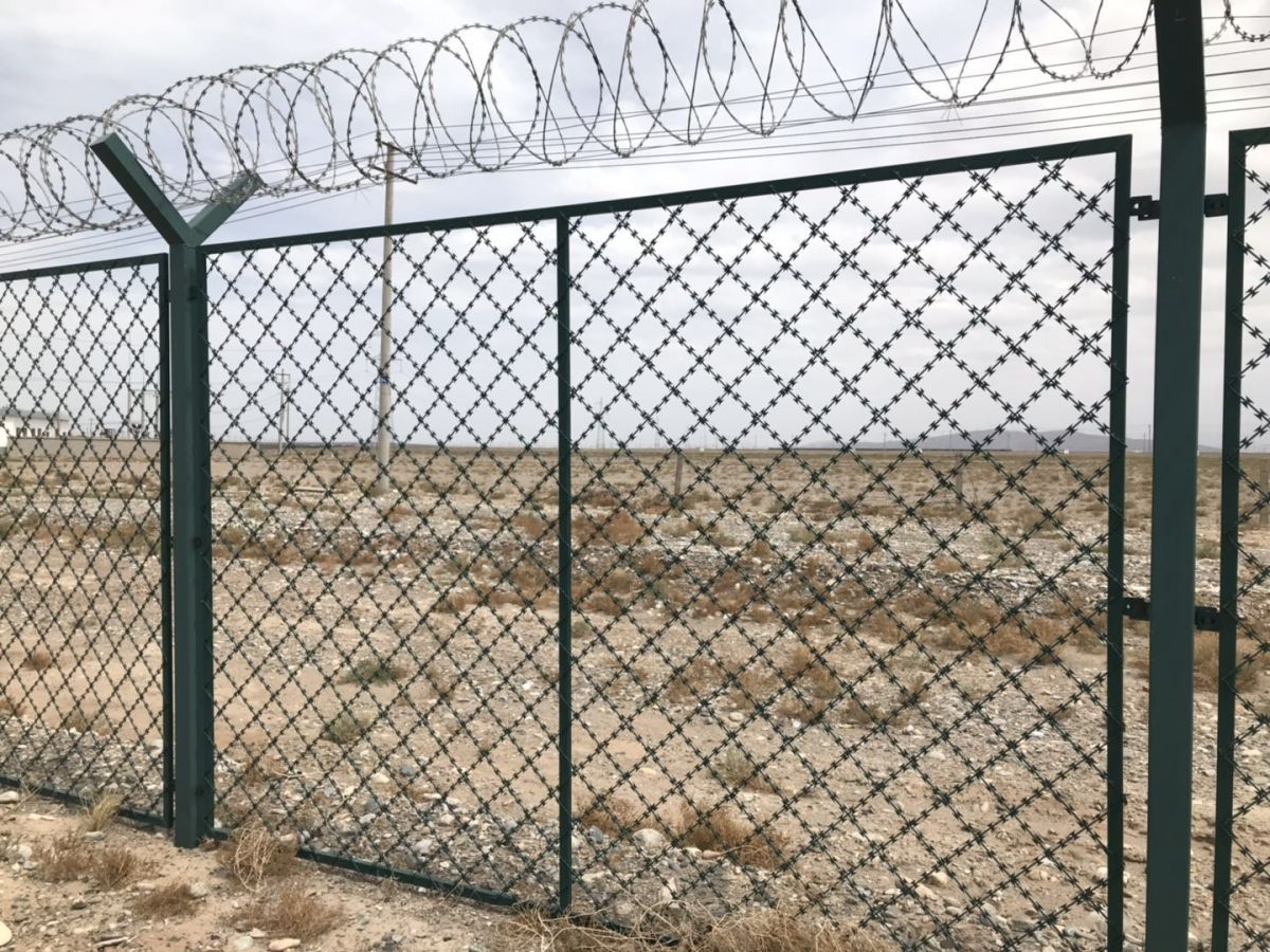 防護區周界柵欄主要由立柱、支撐、編織網、曲臂、刺絲、刺刀籠、系緊裝置及固定裝置等構件組成。