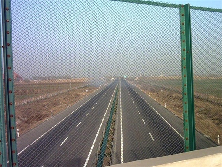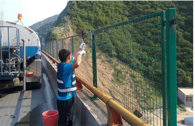 橋梁防拋網緊固件做熱浸鍍鋅,鍍鋅量為120g/㎡,縱向每隔60m或轉向處設置一道斜撐,斜撐為廠家配套生產。橋梁防拋網立柱底部對穿鉆孔,孔徑=11mm,施工安裝立柱時穿30cm長鋼筋,增強立柱穩定性。