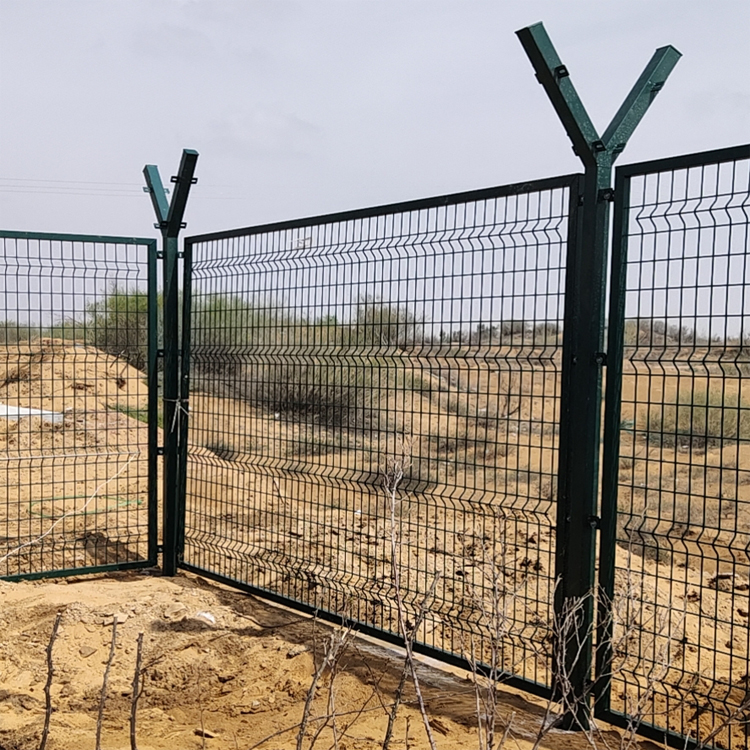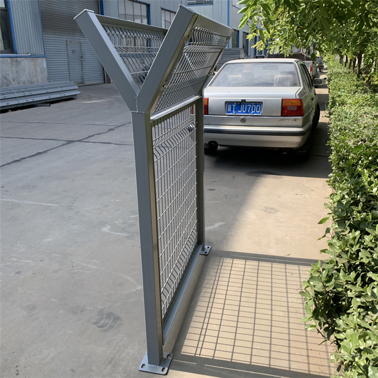 4.網(wǎng)片安裝,根據(jù)立柱中心距選用相應尺寸的網(wǎng)片,用緊固件把網(wǎng)片與立柱進行連接固定,在連接的同時調(diào)整網(wǎng)片與立柱的間隙和網(wǎng)片的水平位置,按此方法逐張安裝。