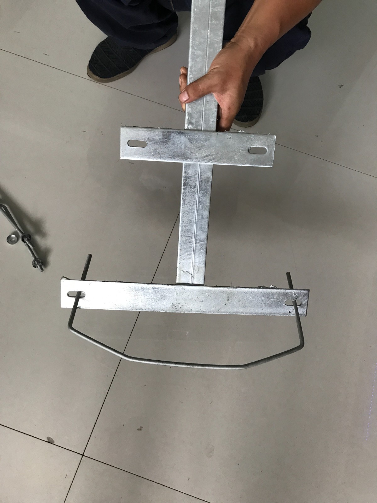 立柱支架采用50mmx30mm,壁厚2mmq235矩形鋼管和寬50mm,厚度4.5mm,長度分別為246mm和428mm的兩塊Q235鋼板焊接制作,矩形鋼管上部焊接掛鉤采用長度30mm的φ5mm鋼筋制作,加密支架采用50mmx30mm壁厚2mmQ235矩形鋼管制作??v向拉筋、冷拔鋼絲、支架抱箍、支架等均需要熱鍍鋅處理,鍍鋅量270克/㎡