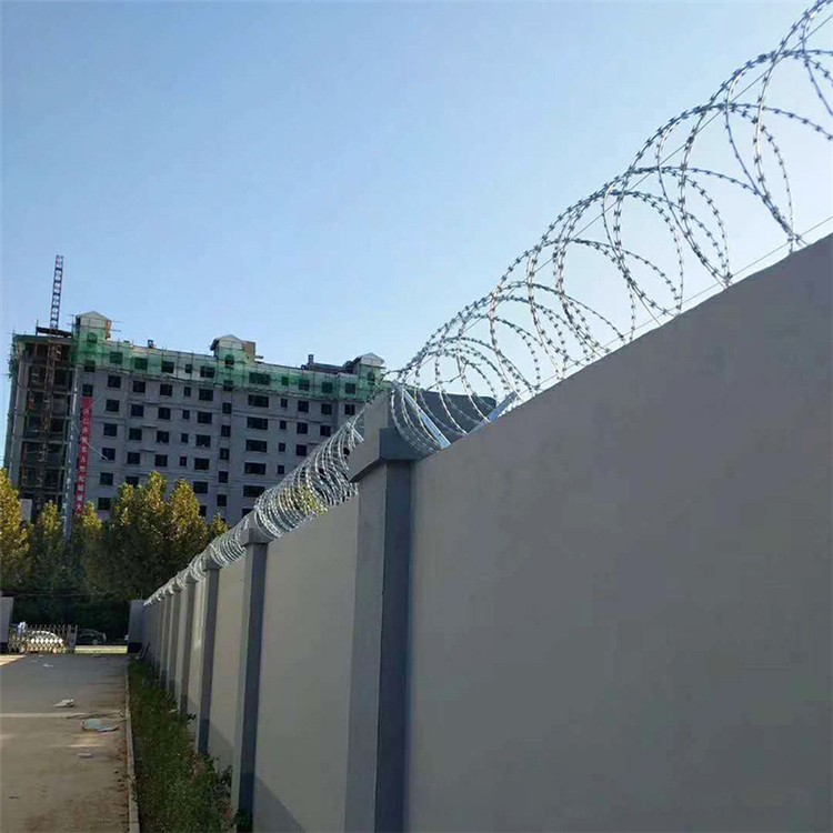 防攀爬刀片刺繩主要用于看守所、監(jiān)獄、廠、學(xué)校加高。防攀爬圍墻刀片刺繩一般為鍍鋅刺網(wǎng)和不銹鋼材質(zhì)的滾刺網(wǎng),圍墻頂端安裝刺網(wǎng)后既增加圍墻的高度,又可以防止入侵者的攀爬,具有隔離的效果。