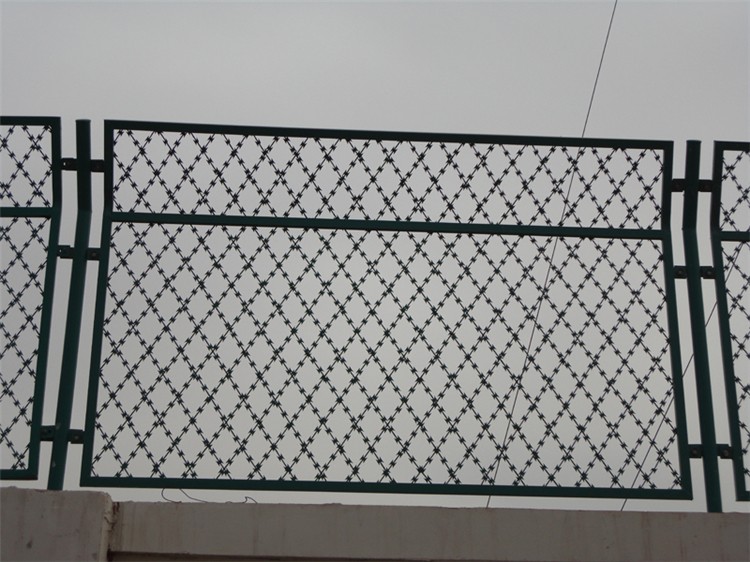 最后和大家說說近兩年衍生出的新型廠區邊界防護圍欄網。防攀爬效果好,中間都是小刀片的。不僅僅的是工廠, 看守所、監獄、軍事禁區都用這種。在隔離網一層防攀爬效果的基礎上面,再多一道安全墻 ,這種刀刺網都是利用鋼板沖出刀片來,用專制卡扣固定在一起。兩個圈用卡扣固定,這樣拉伸開才是連貫一圈一 圈固定在一起。