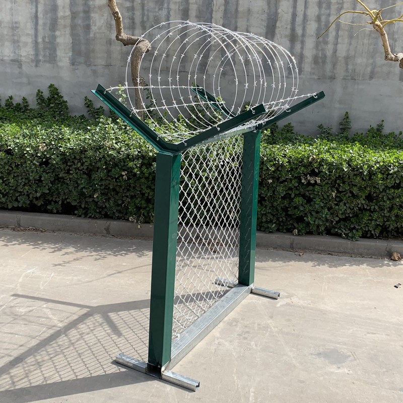 鋁包鋼隔離網是新型的機場圍界隔離網,它是由Y型燕尾立柱、鋁包鋼勾花網、鋁包鋼刺絲網組成,鋁包鋼隔離網具有獨具匠心的鋼絞線穿插式連接立柱和網片,在保證美觀大方的同時,能夠承受20kN推力的鋁包鋼絞線使整體圍界足夠堅固耐用。鋁包鋼線的制作方法是在鋼絲上包覆一層鋁,包覆方法為Conclad擠壓法,也有采用粉末冶金技術將鋁粉末包到鋼絲上,包鋁后可冷拔以提高強度。這是一種較難制造的金屬線,尤其是控制好鋼絲表面質量、拉絲潤滑及防止造成后續應用斷絲等方面。
