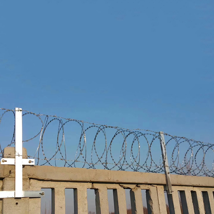 1,滾刺鐵絲網采用的刀片刺繩繞圈后相鄰的兩圈每隔120度便應用刺絲連接卡進行固定,并且使其張開后形成蛇腹網狀。不僅如此,滾刺鐵絲網在閉合之后的刀片刺繩卷經應為50厘米,張開后每交叉圈的安裝間距應為20厘米,直徑不得小于45厘米。