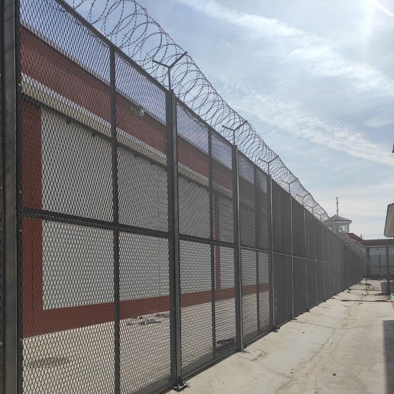 產品特點:未成年人管教所鋼網墻具有堅固耐用、美觀大方、鋒銳利、防攀爬、抗強風、抗沖擊、抗剪切、抗腐蝕等優異特點。用途:監獄鋼網墻主要用于監獄、看守所、少管所、拘留所、所、禁區、邊防線等高安所。